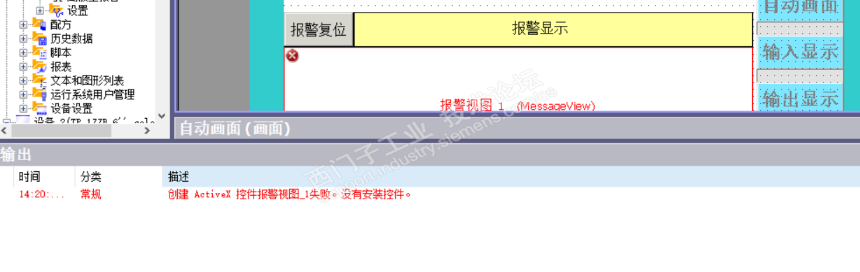 WINCC flexible 2008 SP5,打开文件,提示没控件,报警视图框显示红色。