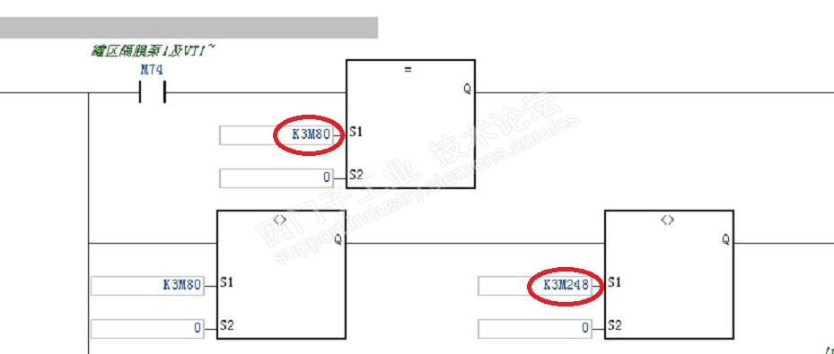 如图所示,台达这个K3M80如何转换成smart的程序,这个块我的理解就是两个数据比较不等于。