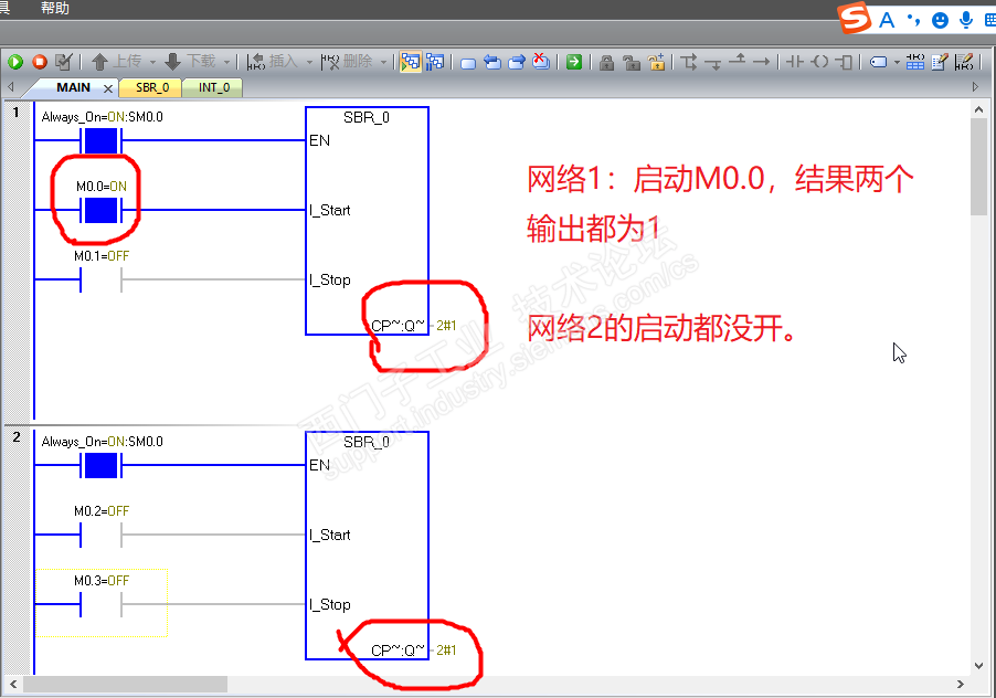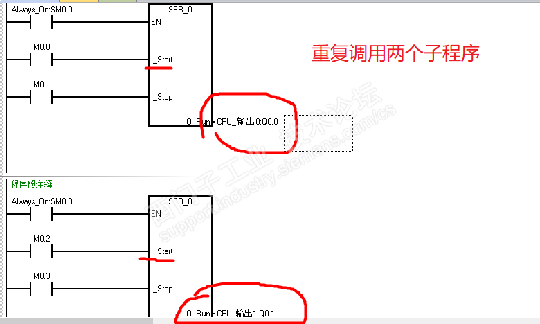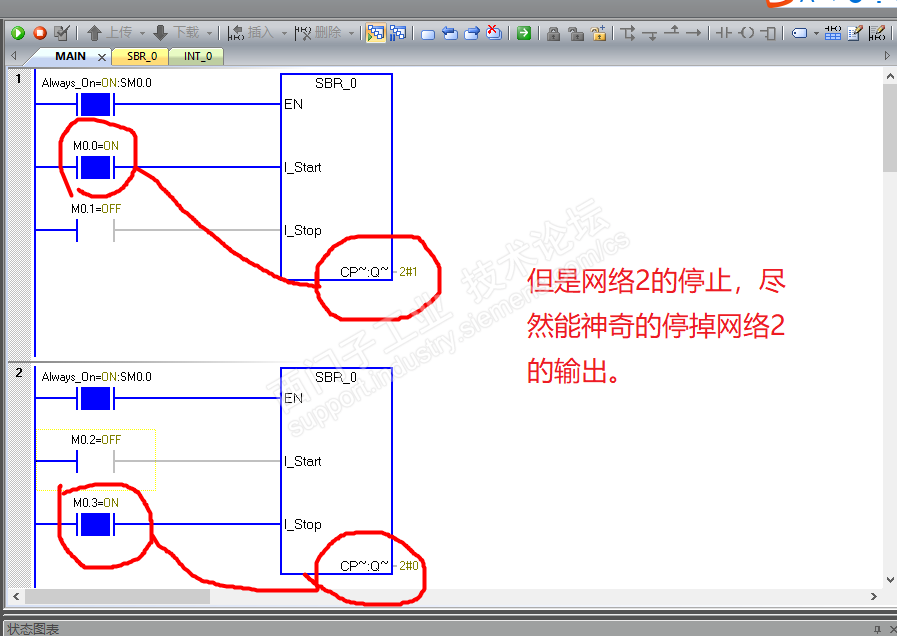 然后网络1的启动为1,及时第二个子程序启动不为1,两个网络的都有输出