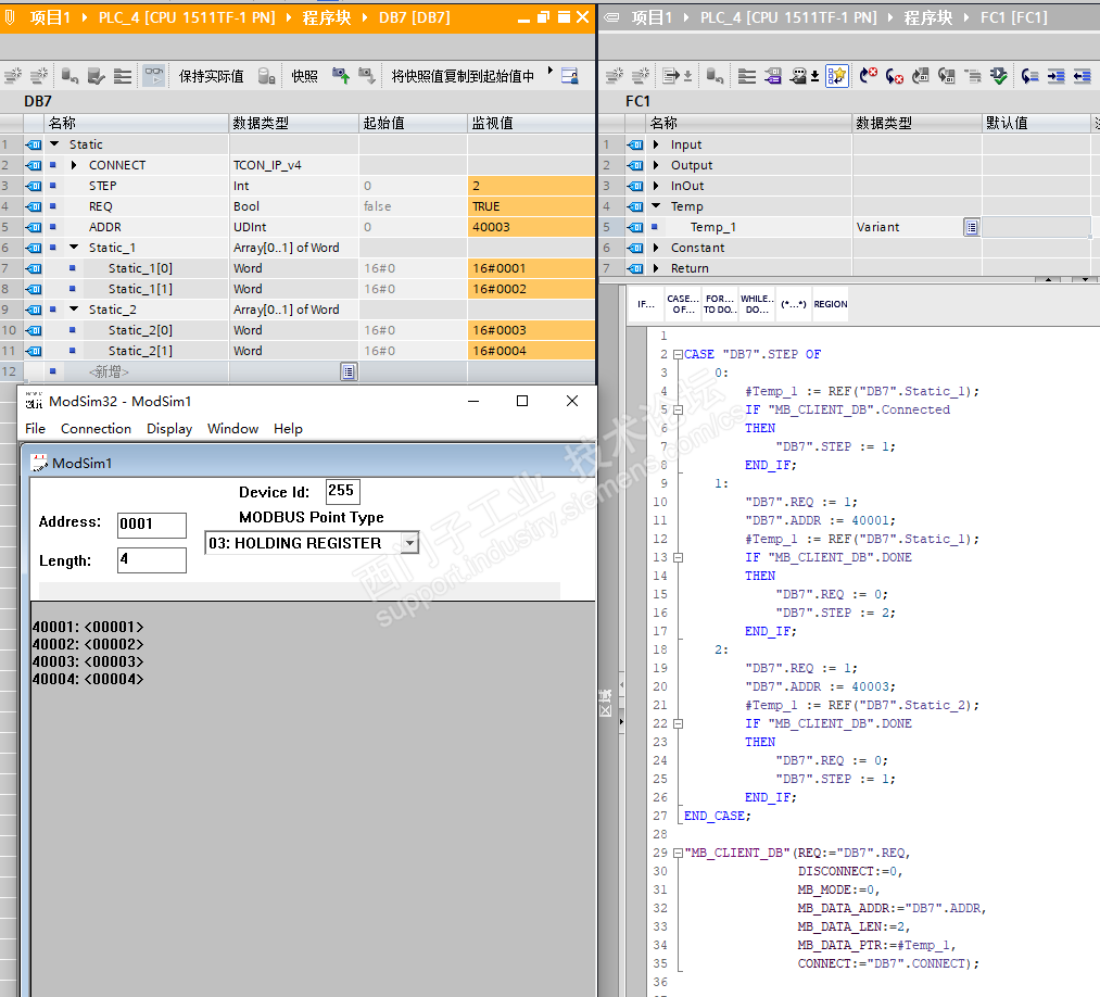 手边没有现成Modbus RTU接好的模块,用Modbus TCP测试了一下,没有问题