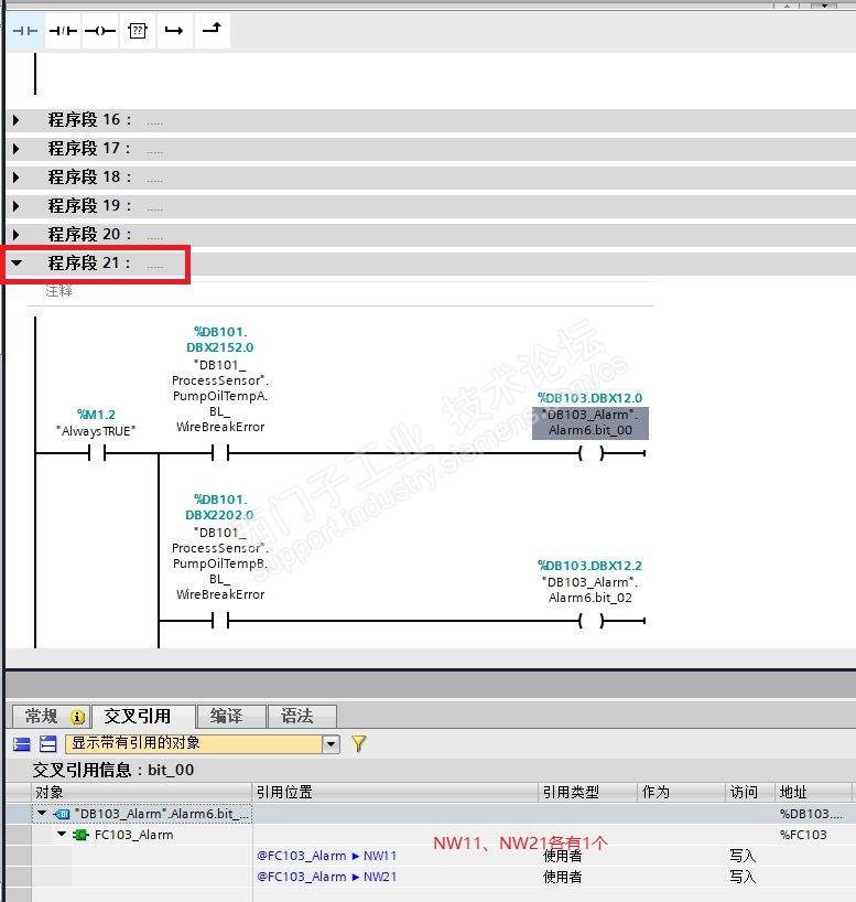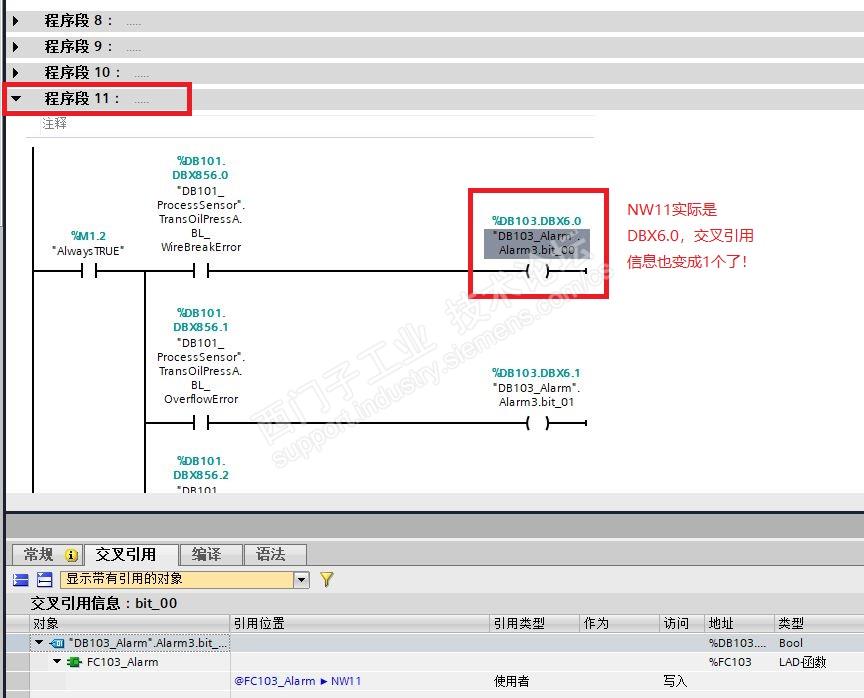 DB103.DBX12.0交叉引用后,有2个索引。其中一个对应的DB103.DBX6.0。而DB103.DBX6.0交叉引用,就自己1个。