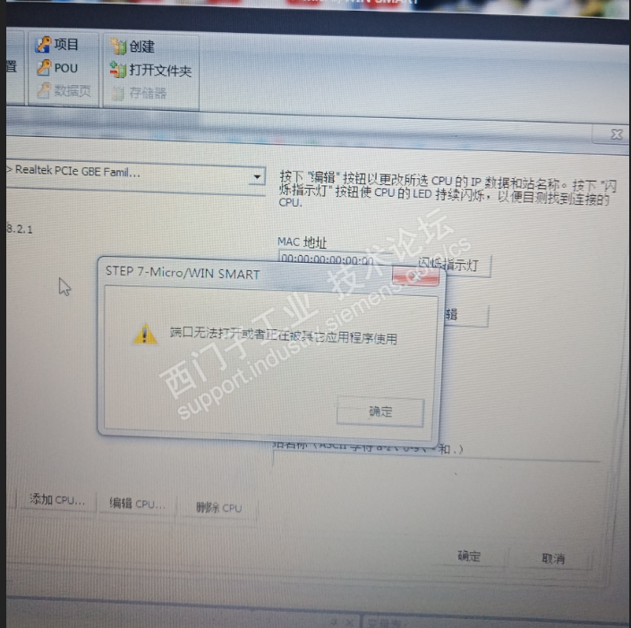 PC网线通信连接SMART,能连接上并且找到CPU了,选中确定时报”端口无法打开或者正在被其他应用程序使用“