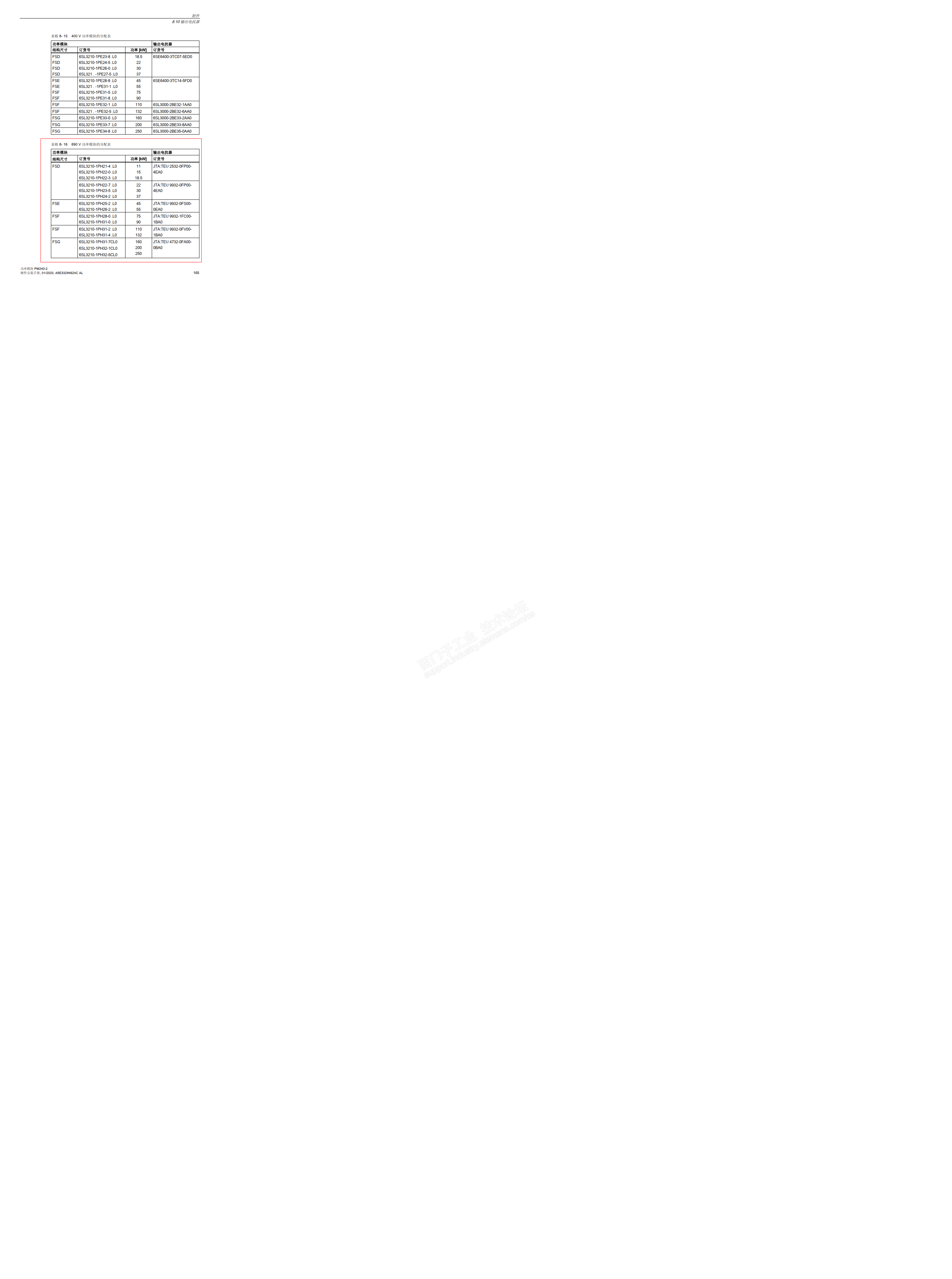 D31-1 06/2018年样本 PM240-2 690V外型尺寸FSD FSE不提供输出电抗器,但是在PM240-2的样本里对应的690V是有输出电抗器的订货号的