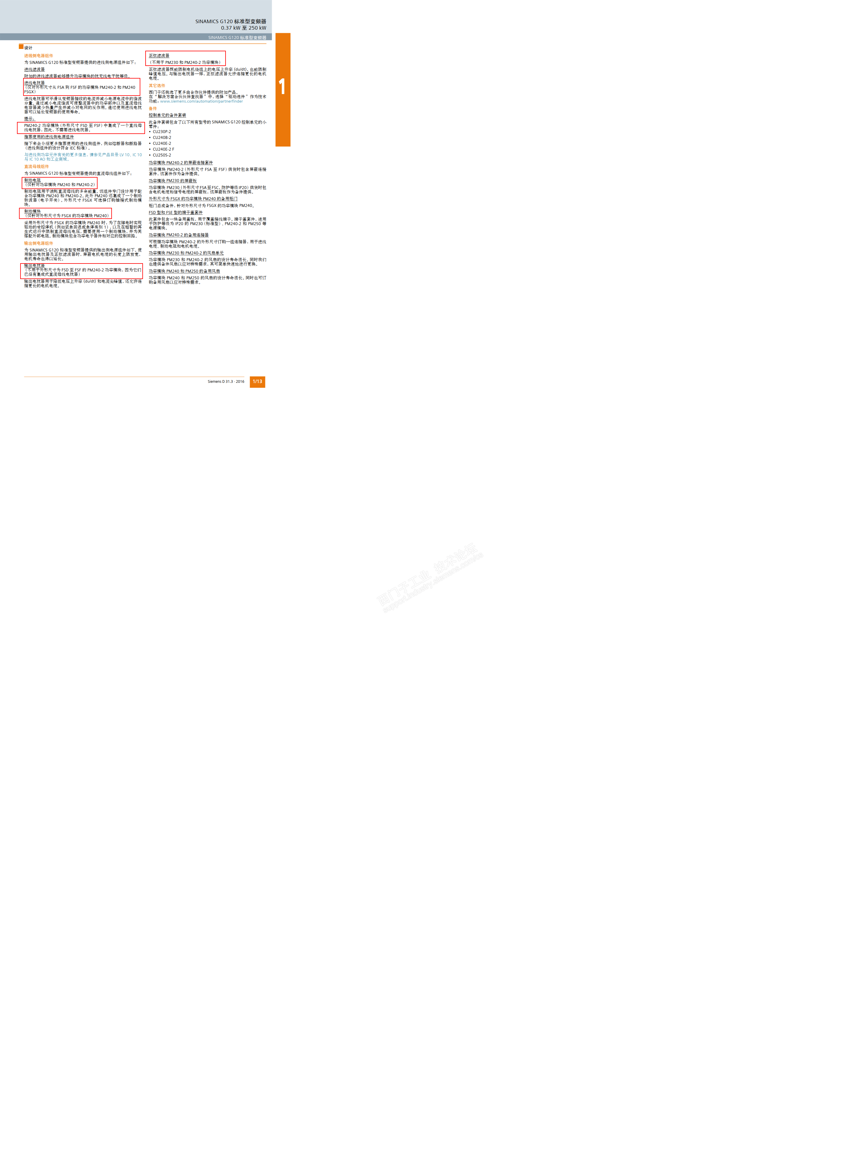 2,关于进线电抗器:根据样本D31.1,D尺寸及以上的PM240-2并不需要进线电抗器,实际上D31.1与PM240-2硬件手册也没有提供相应的电抗器型号;另外,没有找到D31.3这个样本,没看到你说的情况。根据样本的时间,也建议依据D31.1/2018而非D31.3/2016