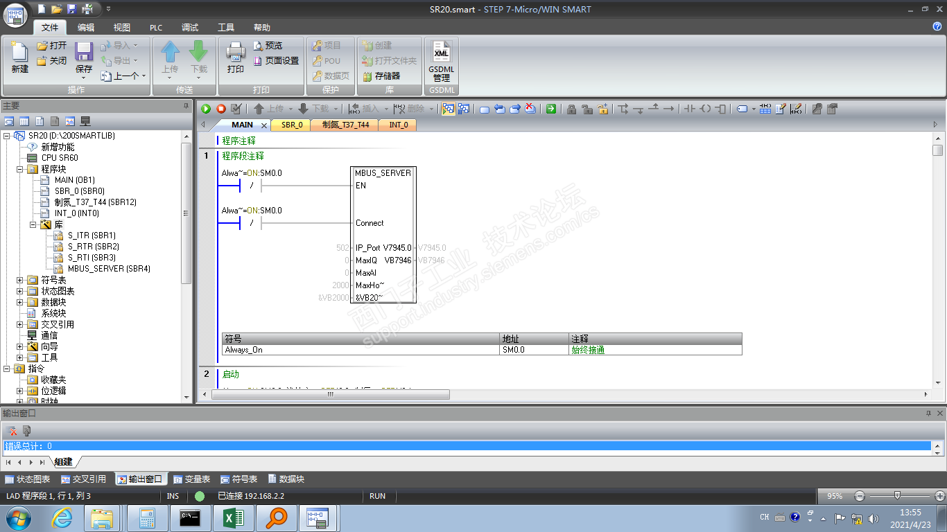 也就是说,不调用ModbusTCP服务器子程序时,后续的逻辑运算结果正常。只要调用了ModbusTCP服务器,后续的逻辑运算结果就不正常了。没查出来是什么原因,请大家帮忙看一下。