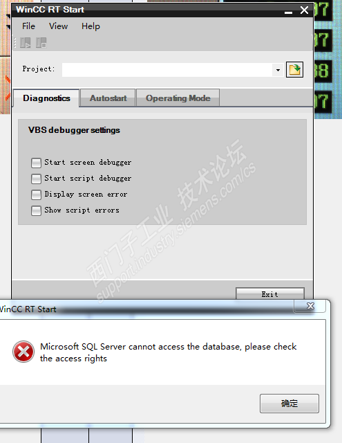 求助,几个月运行好好的程序,昨天工作运行电脑突然停电,后原来加载工程始终运行到82%就死机,后来就利用自己笔记本电脑重新生成运行程序,拷由到工作电脑上,运行始终弹出附件图片对话框,就是不让执行,提示是Micrsoft SQL Server cannot access the database,please check the access right.