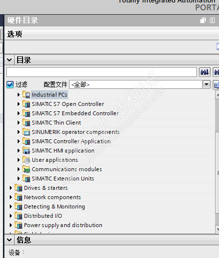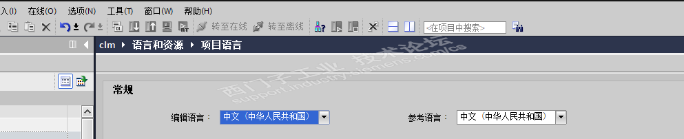 博图界面是汉语,硬件目录是英语。以前是汉语升级版本就变了。请问怎么设置!