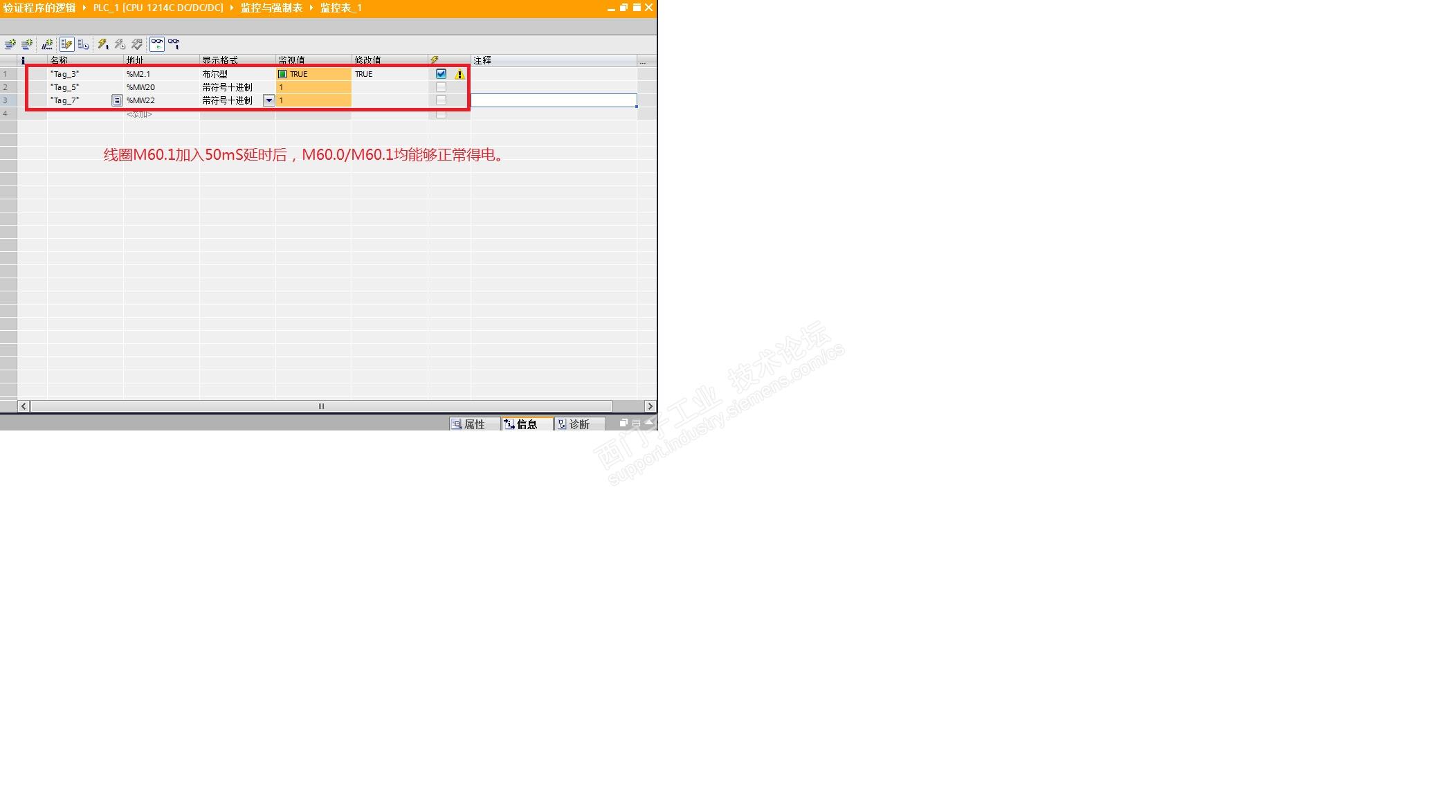 我继续模拟我修改的程序段,在程序段4中添加一个50mS的接通延时定时器,结果又会是如何?