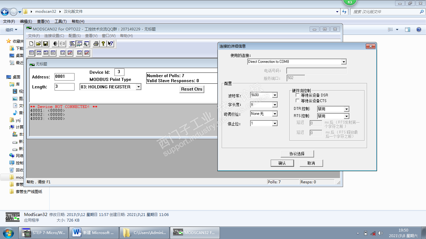 Modscan 的配置界面如上图,谢谢各位专家指导