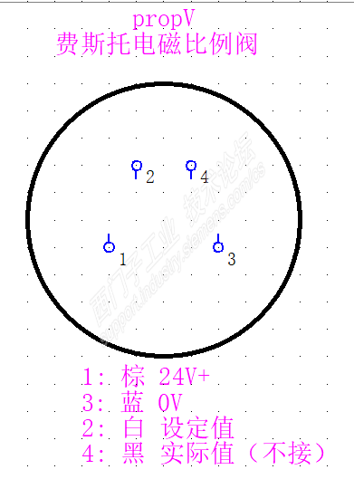 该阀 除去4号线的实际值作为反馈信号后,相当于有三根线要接,如图1,分别是1电源+,3电源负,2设定值。