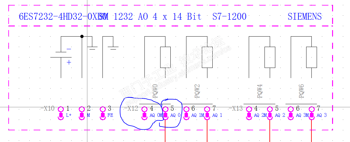 我要把它接到模拟量输出模块上SM1232上,就只有2号线设定值接AQ0(端子5),那模块AQ0M应该接什么啊?
