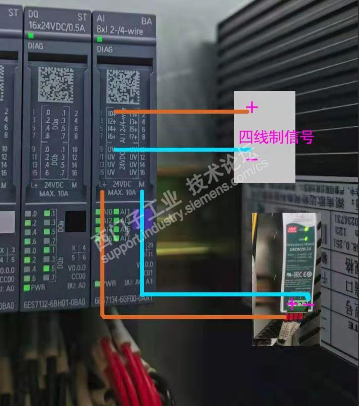 我确认设备是四线制 2路信号。接法是这样 但是就是IW里没有监测到真实数值。是不是因为电流信号 电压不够的原因? 电流是>4mA的,一般可以到10mA ,电压是12V。是不是电压的问题呢???