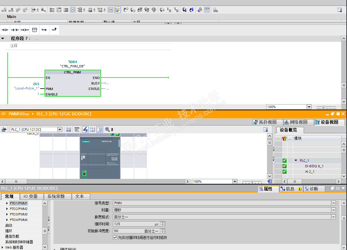 (1):S7-1200的Q0.0输出周期为125us,占空比50%的脉冲串。