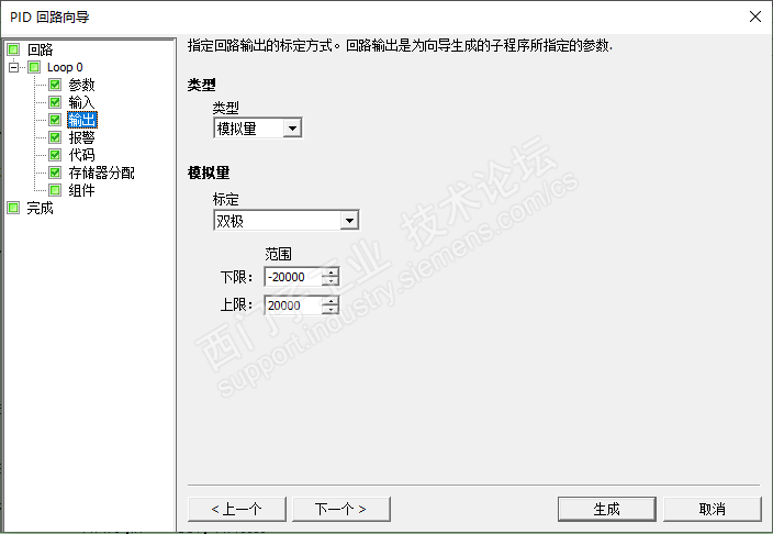 4.1:PID向导的输出是模拟量,范围是双极性-20000---+20000以配合40000us的全周期最优分辨率的占空比调节。