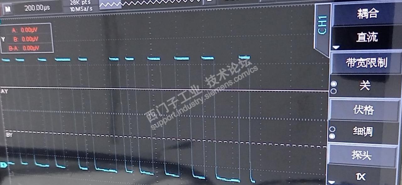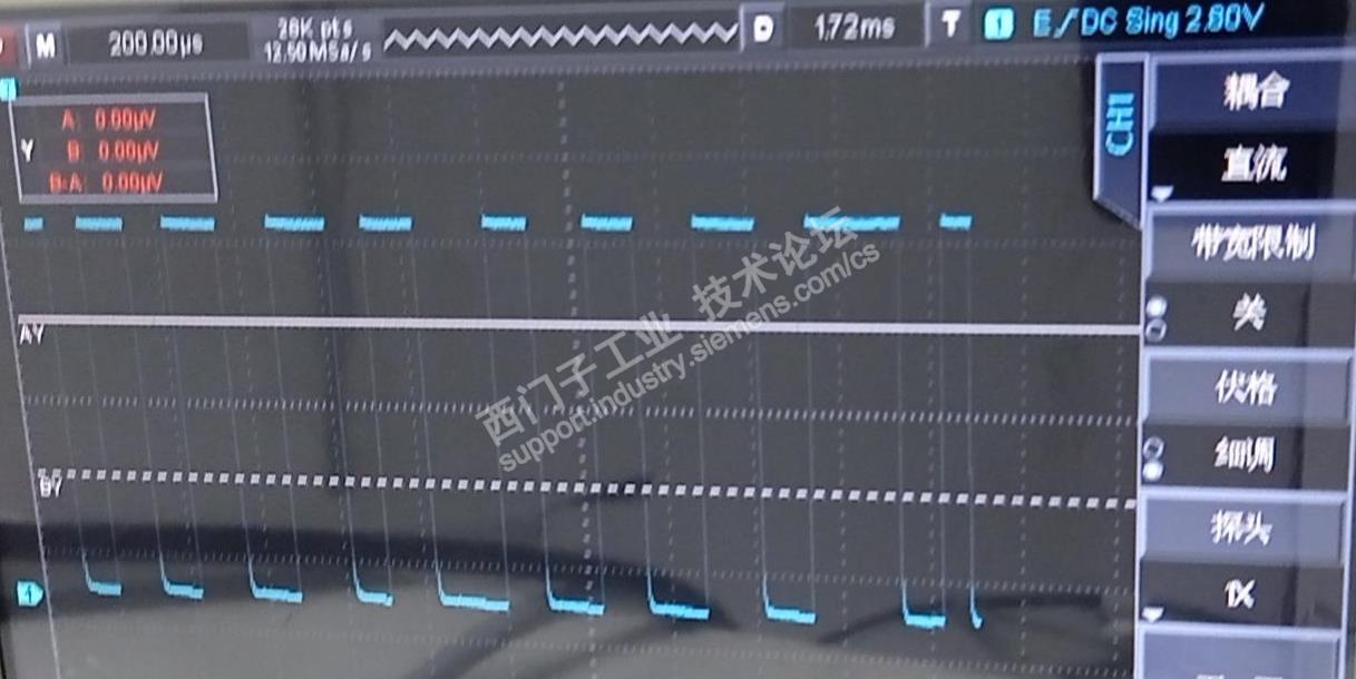 3.7:以下图片是100us时序下,示波器图是Q0.0的输出波形(1000us里有5个上升沿),程序里没有统计计数差值。