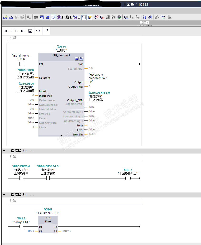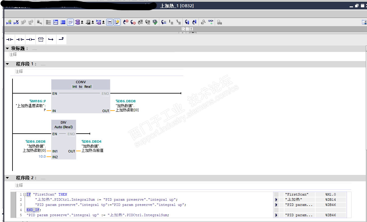 为什么两个PID加热程序,参数和程序基本一致,为什么第一个没有故障,而第二个程序却有800报警?如图。