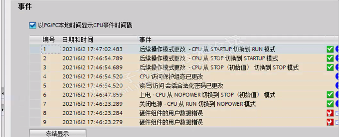 查看在线诊断没有报错。倒是断总闸电的时候CPU报:硬件组件用户数据错误,隔天上电一切正常。
