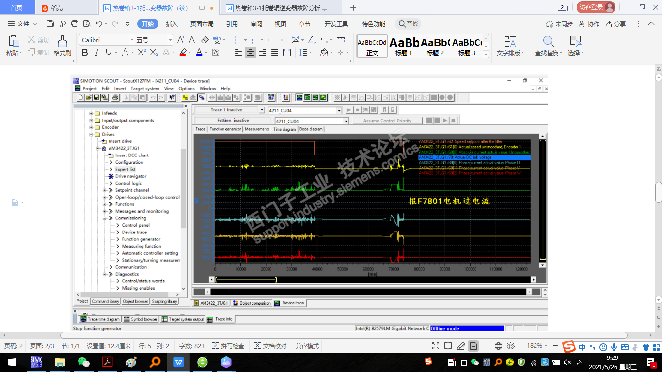 热卷箱3-1托卷辊模轧运行过程中报F7801电机过电流故障