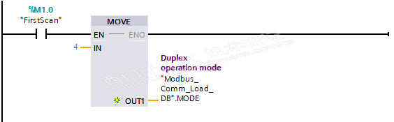 2.设置”Modbus_Comm“指令的MODE参数,这个参数也比较重要,和前面的2线制,4线制的硬件接线相互匹配。这个参数需要在”Modbus_Comm“的专用背景DB里面寻找,这里是DB31。为什么要修改?手册上是这么解释的。