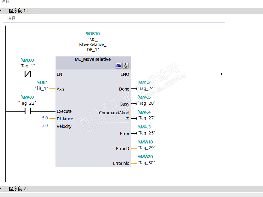 西门子1214C与三轴步进相对定位只有程序1完了执行程序2过后程序3,4,5,6不执行是那个地方有问题