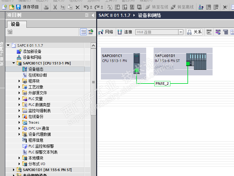 2.如图所示,课程演示的集中和分布式I/O连接的通道是PN/IE_1,而自己连接的是PN/IE_2,这二者有什么区别么?