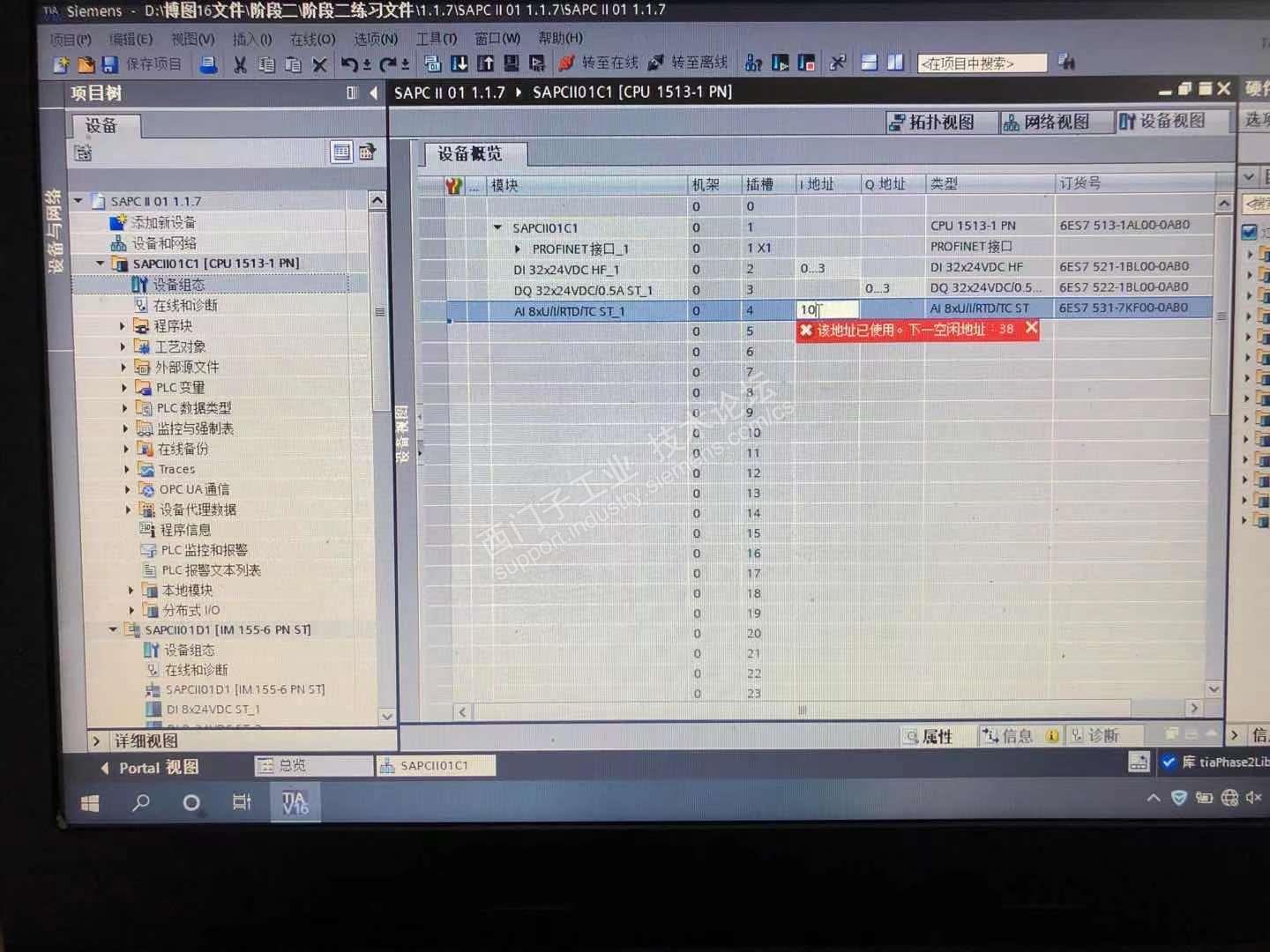 4.同上述3,在设置ET200SP时的模块地址时,两个输入模块的地址会报错。但是AI和AQ两个模块的地址可以设置且不报错,