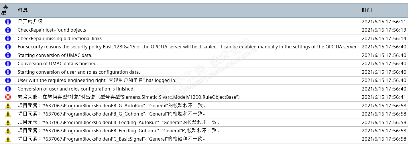 转换失败。在转换类型“对象”时出错(型号类型“Siemens.Simatic.Sivarc.ModelV1200.RuleObjectBase”)