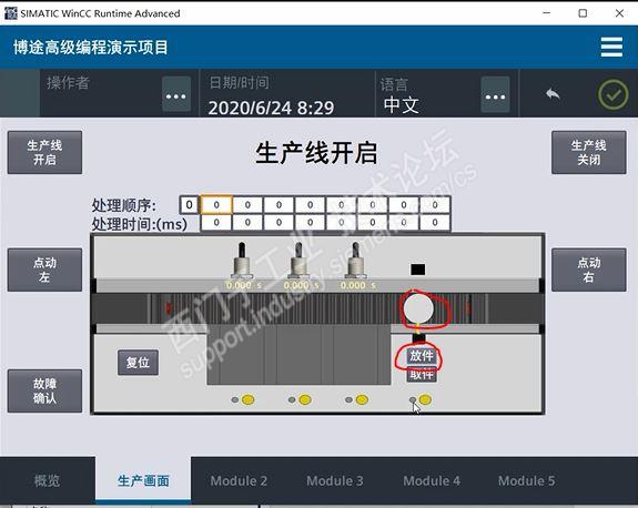 我用鼠标按照“放件”按钮不动,圆圈就在传送带上,松开“放件”按钮,圆圈就消失,如何解决这个问题呢?