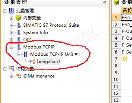各位大神好,我在用wincc7.3与Smart200,通过路由器进行Modbus TCP通信时,两端都配置好了,一旦运行wincc,在wincc的变量表里就有Modbus TCP协议显示红色叹号,而且无法显示下位plc数组,这肯定是有问题,但不知是什么问题,如何解决,请知道的大神指点指点,