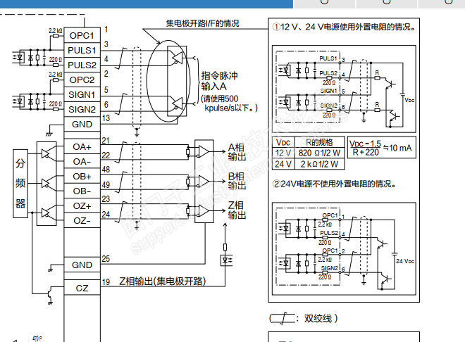 西门子PLC带日系的伺服,基本都要加2K分压电阻的。西门子PLC输出24V,而日系驱动一般只接受5V输入。
