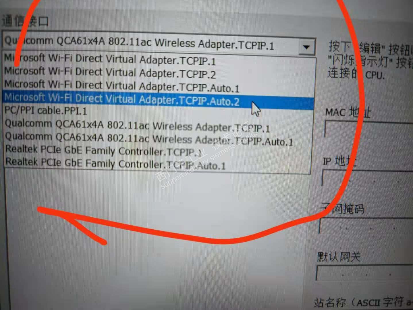计算机与CPU建立以太网通讯,通讯接口选择TCP/IP在下方怎么选择?