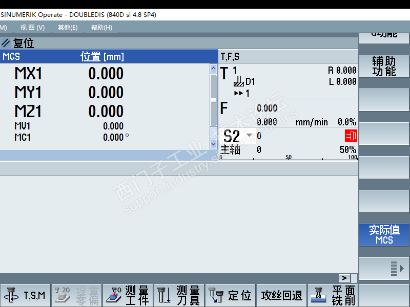 大家好,我这里有一台828D单通道双主轴机床,请问他俩主轴这个第二主轴刀补怎么生效的,TFS这里只显示主轴1上的刀号 用SETMS(2)设置第二个主轴为主主轴也显示第一个主轴的,