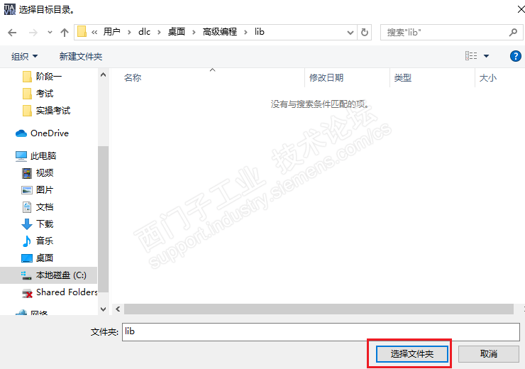 5、这时候还会弹出一个对话框,目的是为了选择一个路径,用于存放解压缩后的库。选择好路径后,点击选择文件夹按钮,如下图所示。