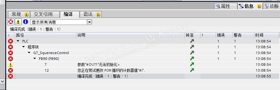程序在S7-300中是正常编译的,但在博途中就出现了错误,