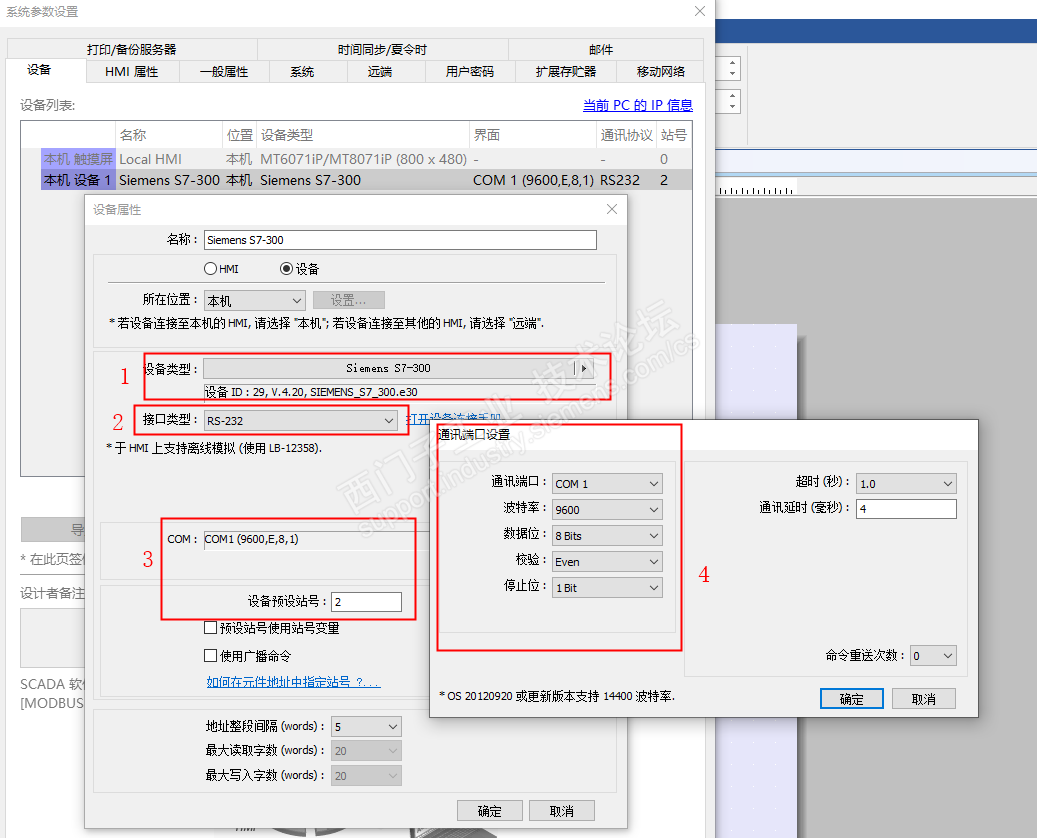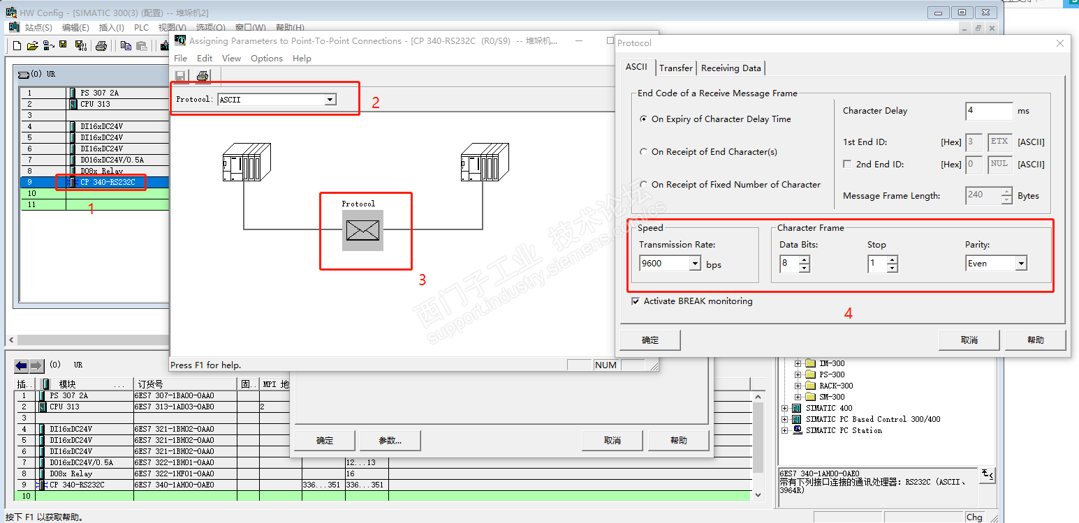 PLC是313的接了一个扩展模块CP340 RS232,设置如图如示