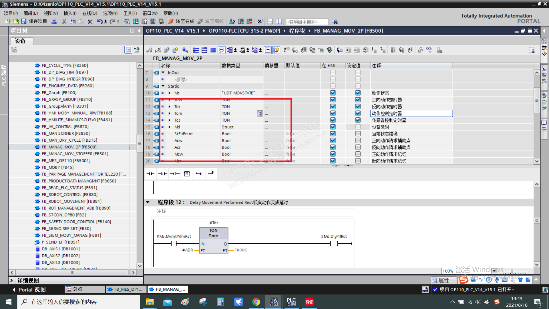 S7-315 的 PLC ,同样博途 15.1生产背景数据块的是由TON 形参数据类型