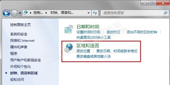 步骤1.打开Windows 控制面板中的"时钟、语言和区域",如下图所示