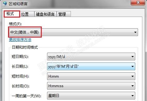 步骤3:格式选项卡下:格式中选择中文(简体,中国),如下图所示
