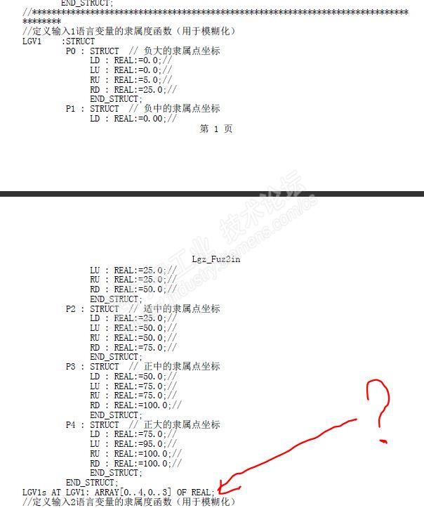 在程序中建立了一个LGV1的STRUCT变量,包含了P0、P1、P2、P3、P4共五个STRUCT变量,在END_STRUCT之后,有一个语句,LGV1S AT LGV1:ARRAY[0..4,0..3] OF REAL.