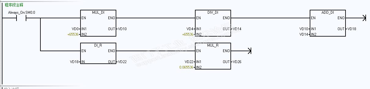 既然人家仪表厂家给出了解决方案,就用人家的32位计算公式。就用VD0(th)、VD4(tl)运算,而不是用VW!