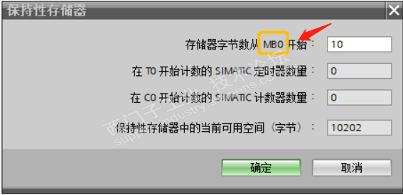 设定保持性存储区时默认是从MB0开始的,我同时启用了系统时钟存储器,如下图: