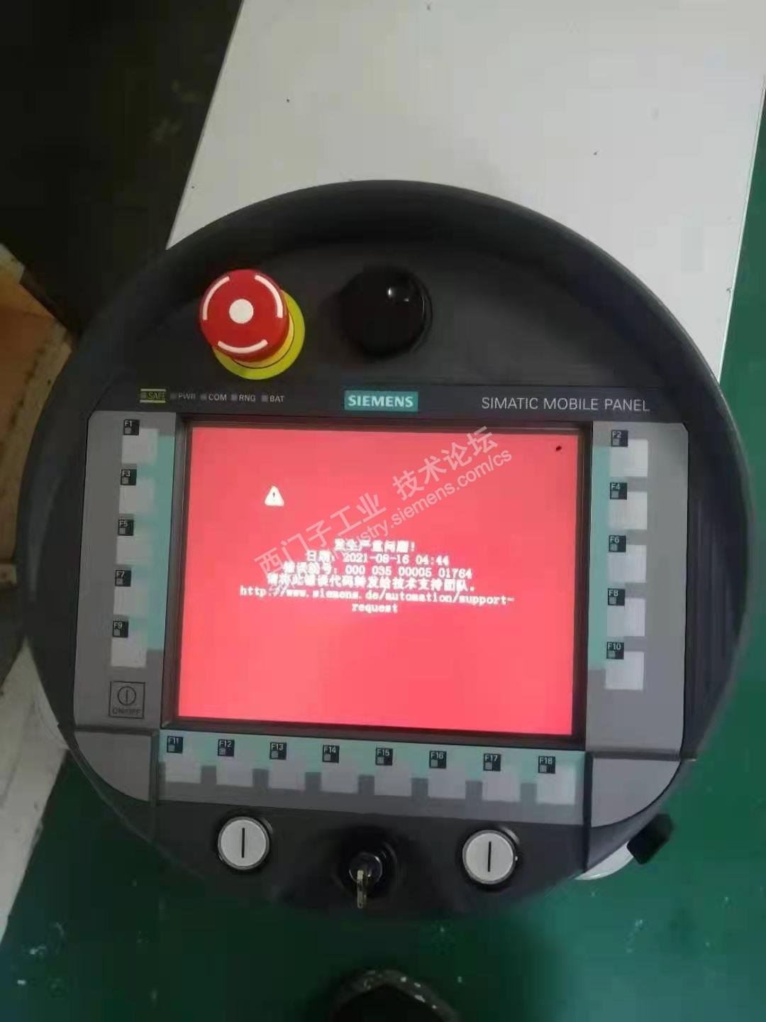 移动面板的订货号是:6AV6645-0EC01-0AX1。这台是今年3月份左右从德国过来的备件货,最近会频繁死机报故障。屏幕变红色,显示:发生严重故障! 错误编号:000 035 00005 01764