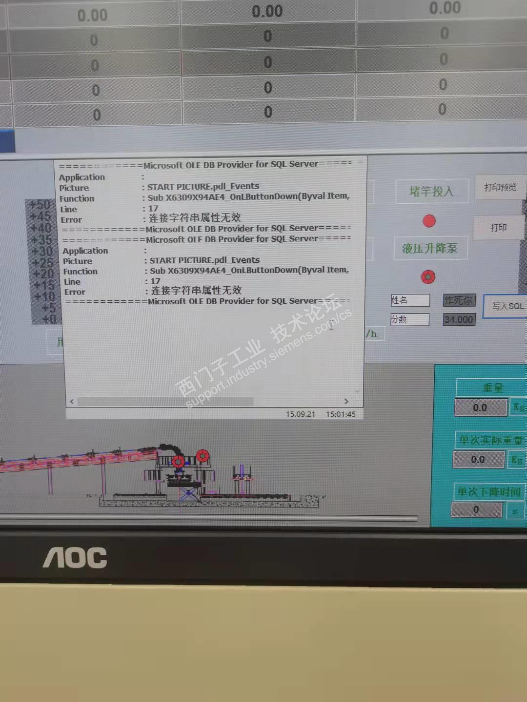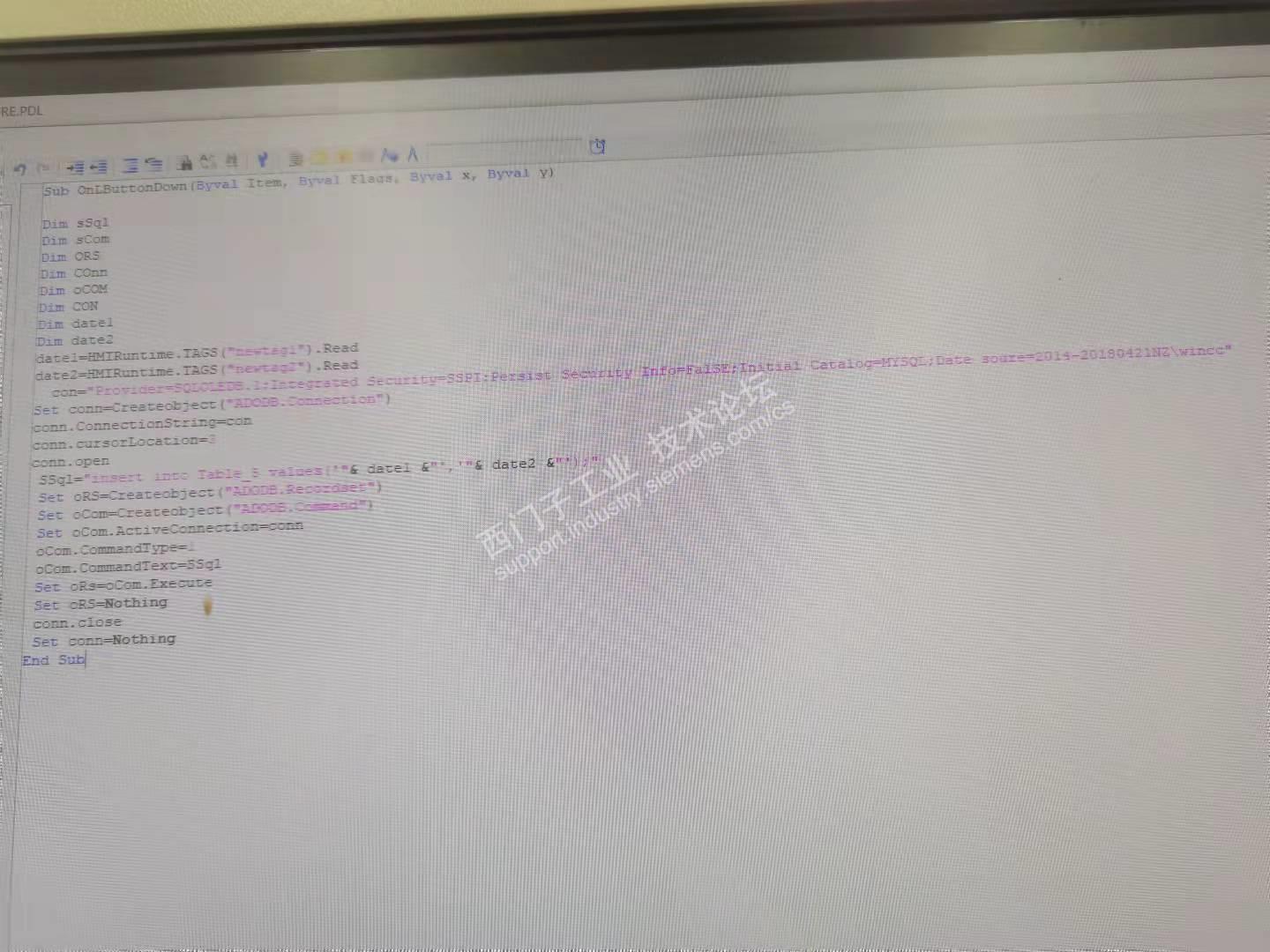 WINCC VB脚本无法写入数据库