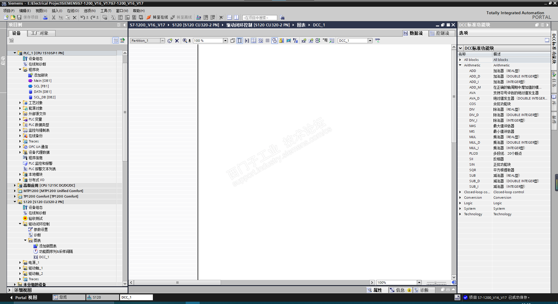 安装 SINAMICS DCC For V17后,可以在TIA中使用CFC语言,但是相应的指令库只有DCC/DCB标准库,