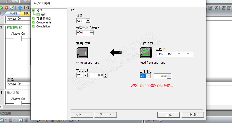 200smart做客户端还是服务器端都是可以的,之前都使用过,smart里的V区就是DB1,官方例程里是1200作为服务端。