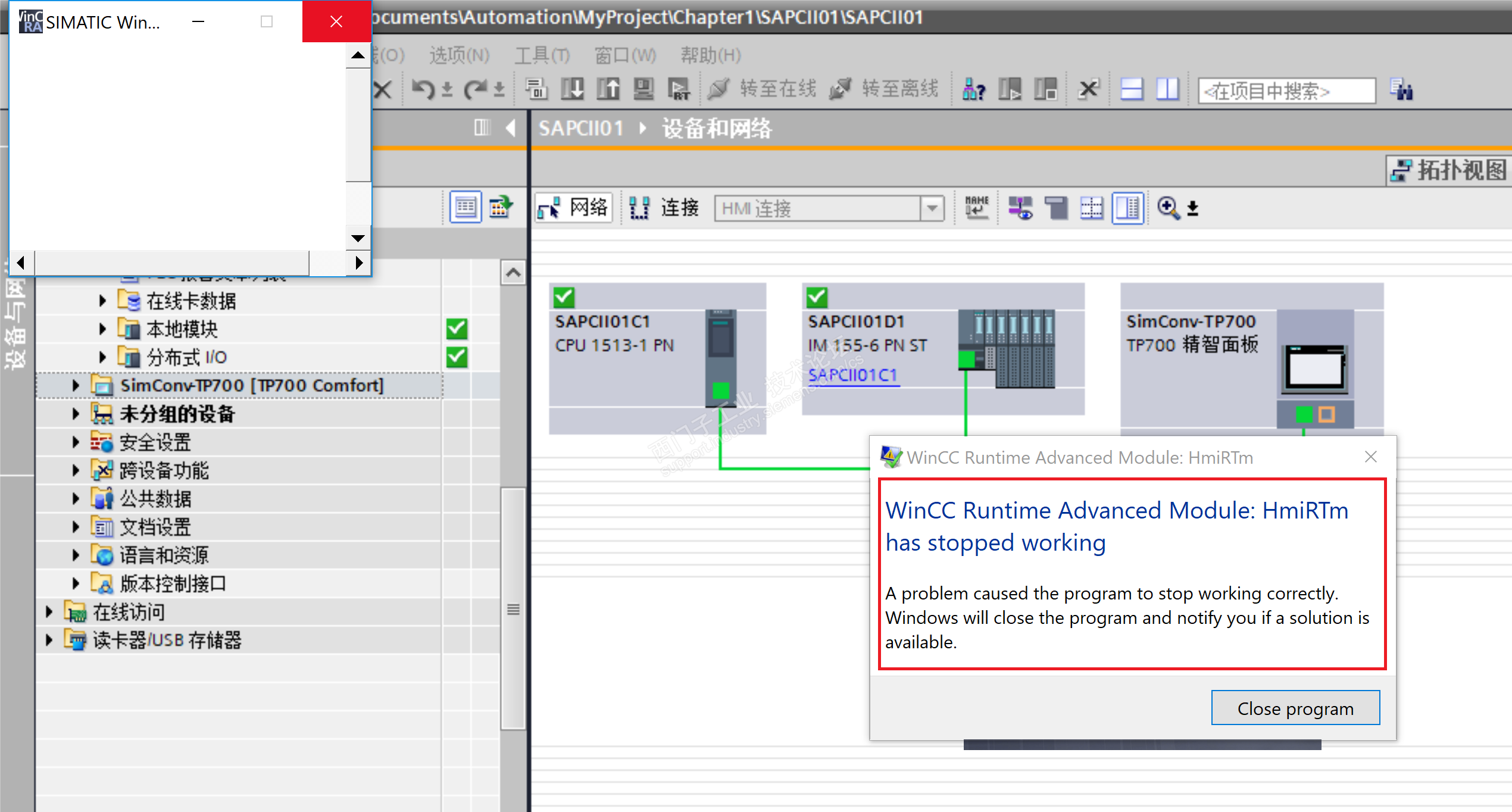 请问下我无法启动仿真,实验了好几次都是显示这个画面,请问如何解决?