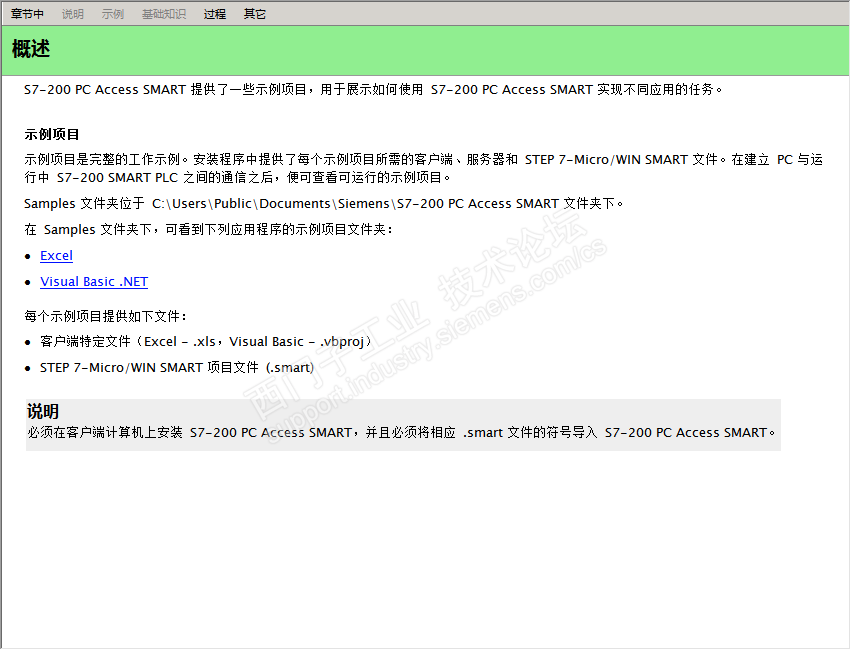 最近在做OPC测试,OPC是微软开发在过程控制方面的应用,硬件上已经统一OPC接口程序,可以免去软件对驱动的开发,把更多精力用于产品开发。S7 200 PC Access SMART是用于连接200 SMART作为OPC的服务器,可与标准的OPC客户端协议进行通讯。安装了该软件,可以连上PLC,并用该软件测试了OPC客户端,但是想自己用C#开发客户端,看这个软件帮助资料有相关实例项目,按操作说明安装路径并未找到Samples这个文件夹,各位同学有位开发过这个,或也遇到该问题,可以一起探讨下,或拿出来一起分享交流。谢谢!