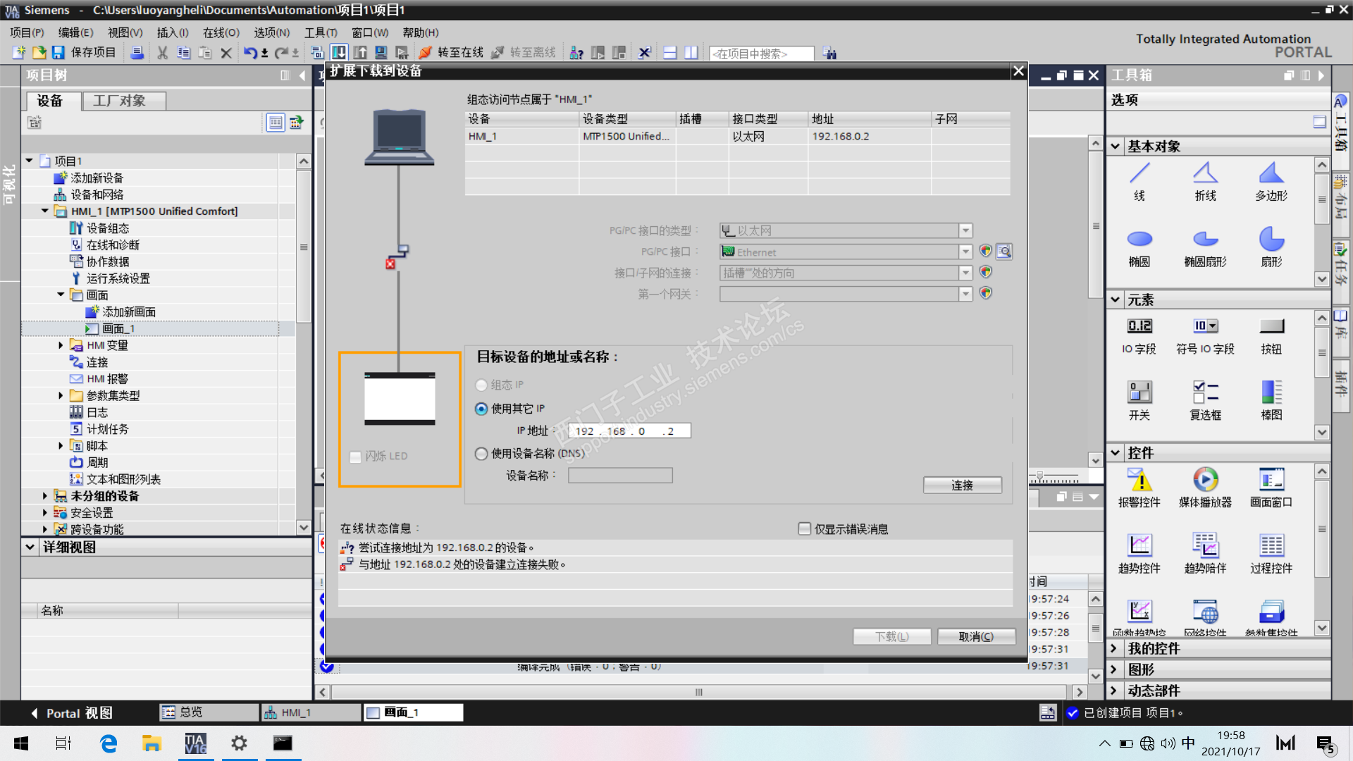 请问统一精智面板MTP1500怎么设置,WINCC Unifed怎么连接?