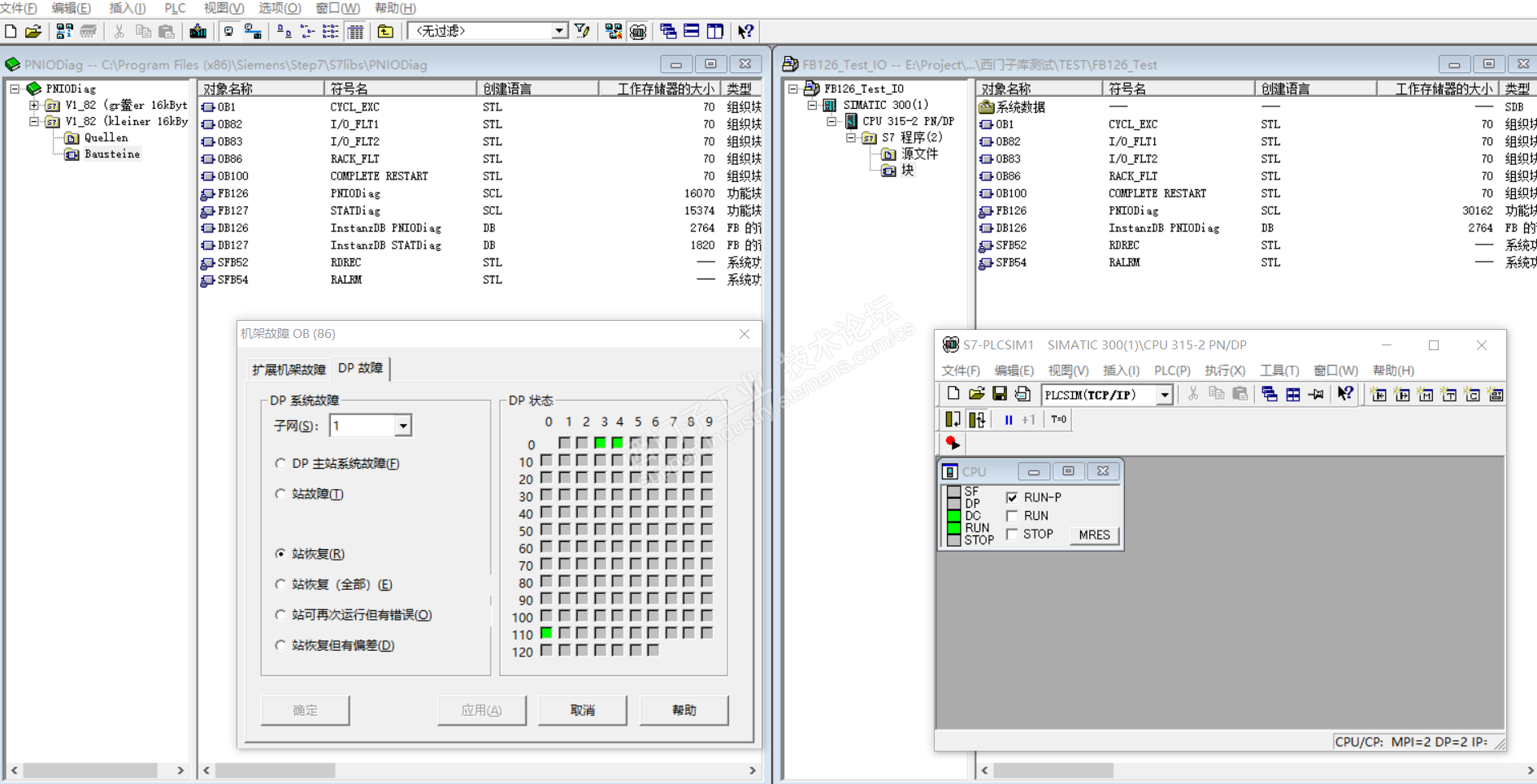 请教下FB126中DB200是怎么自动生成的?目前在S7软件中,对FB126诊断包中的内容全部复制过来,使用仿真下载监控,一直不见DB200自动生成的。网上资料和