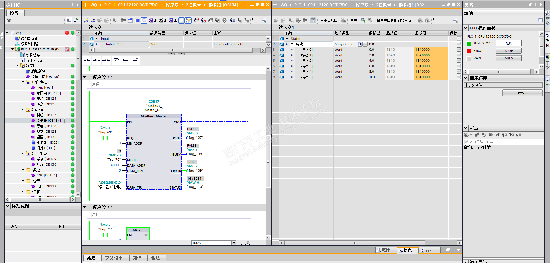 这是和晨控读卡器CK-F060A的通讯,因为上述问题它实现不了读取功能。(本人在校生自学西门子两个月了没有什么经验,每次遇到问题都要停留好久,希望各位大佬能带带我)